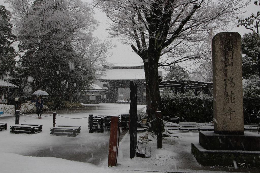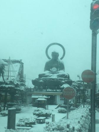 写真は、車窓から見た「高岡大仏」です。こちらはバスから降りて見学の予定でしたが、雪が酷かったため、車窓見学のみとなりました。