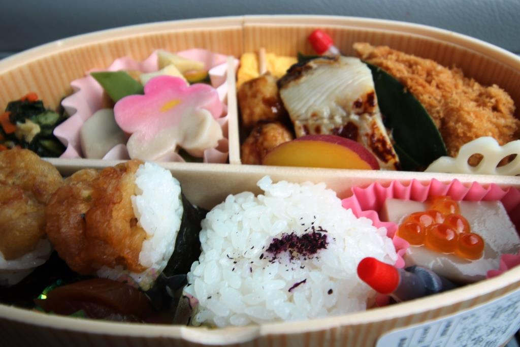 途中、鞍ヶ池PAでは、写真のようなお弁当を積み込み、車内で食事しました。女性向けの可愛らしいお弁当です♪