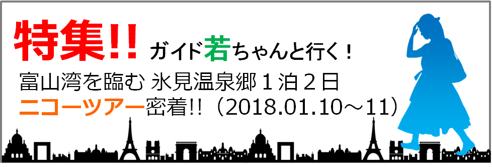 本ページでは、2017年12月〜2018年1月の間、全4回実施した、ニコーツアー「ガイド若ちゃんと行く!富山湾を臨む氷見温泉郷1泊2日」風景をご紹介いたします。